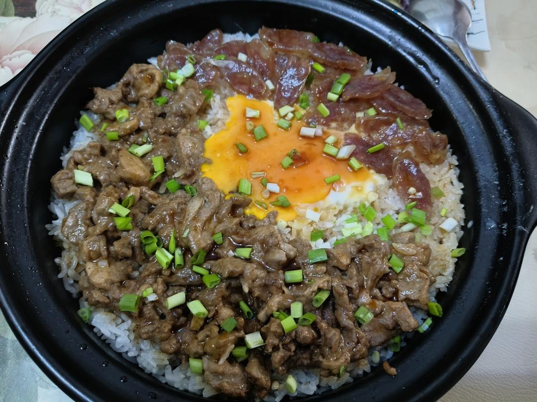 广式牛肉窝蛋煲仔饭