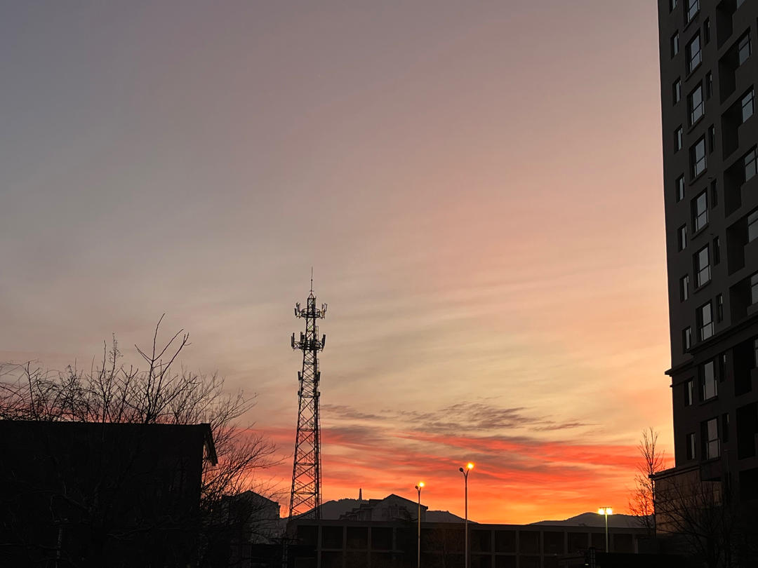 去妈妈家吃午饭,清晨的朝霞好瑰丽……