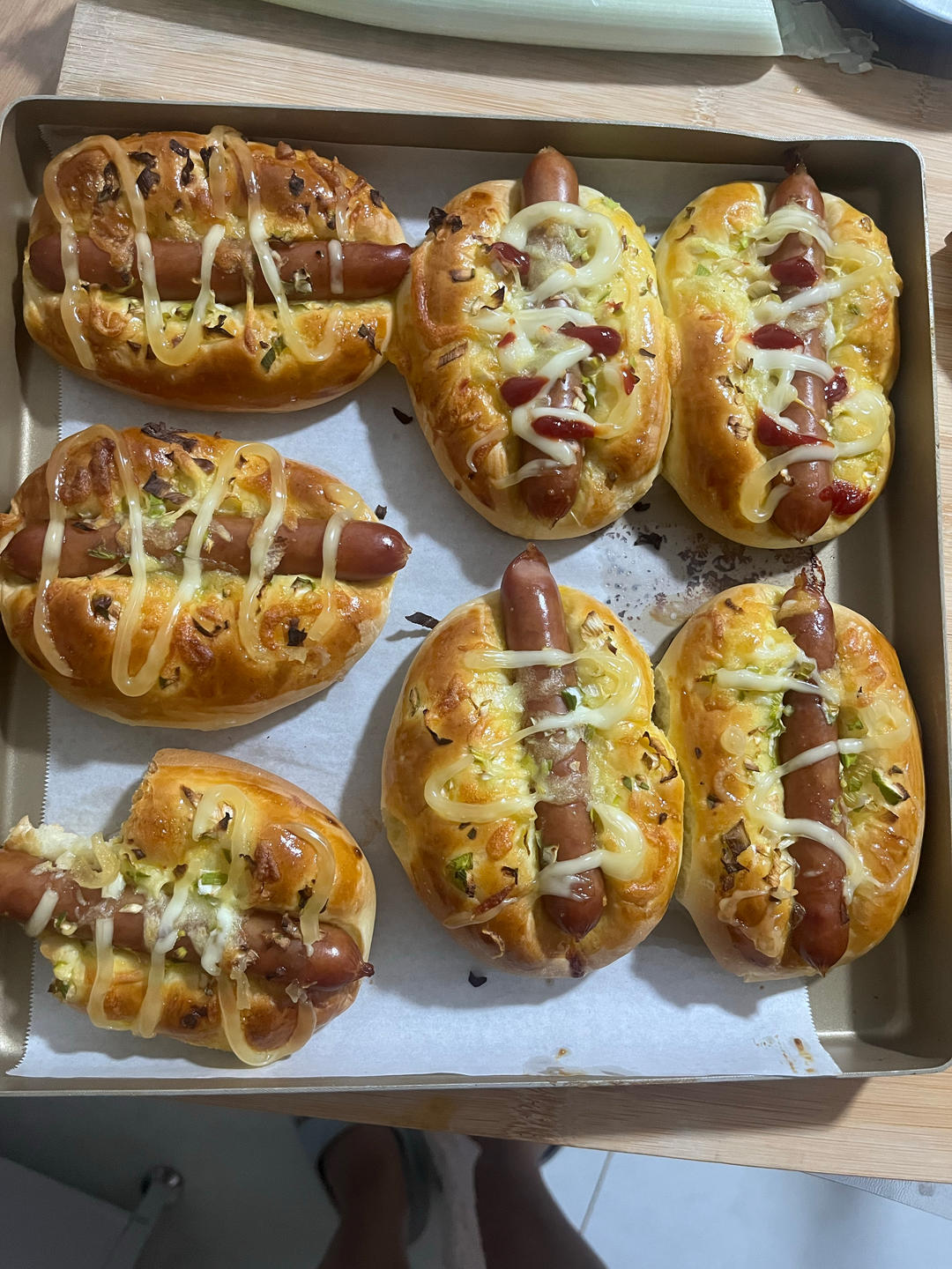 木槿安年如初 做过 波兰种肉松香葱芝士面包 #宵夜•2024年12月30日# 按照这个方子做的肠仔包,主面团牛奶用了80克,鸡蛋用了35克,盐用了2克,没用奶粉,出了手套膜后松弛了10分钟,赶型后发酵至两倍大,最后180度20分钟 2024-12-30