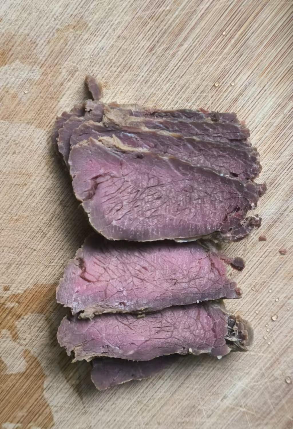 按方法做了卤牛肉,中心颜色很漂亮!中间嫩嫩的口感,非常有牛肉香。
