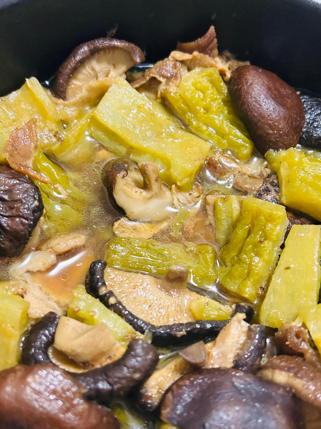 霹雳子 做过 五花肉苦瓜煲 前兩天在一個快餐店吃飯,正好碰到老闆一家人吃飯,有這道菜,可把我饞壞了,今天必須搞到手!苦瓜煲得軟軟的,花菇泡了幾個鐘,很香!五花肉還是硬的,這種口感真是絕了。簡單的調味就可以獲得這樣的美味,真好呀#晚餐•2025年2月8日# 2025-02-08