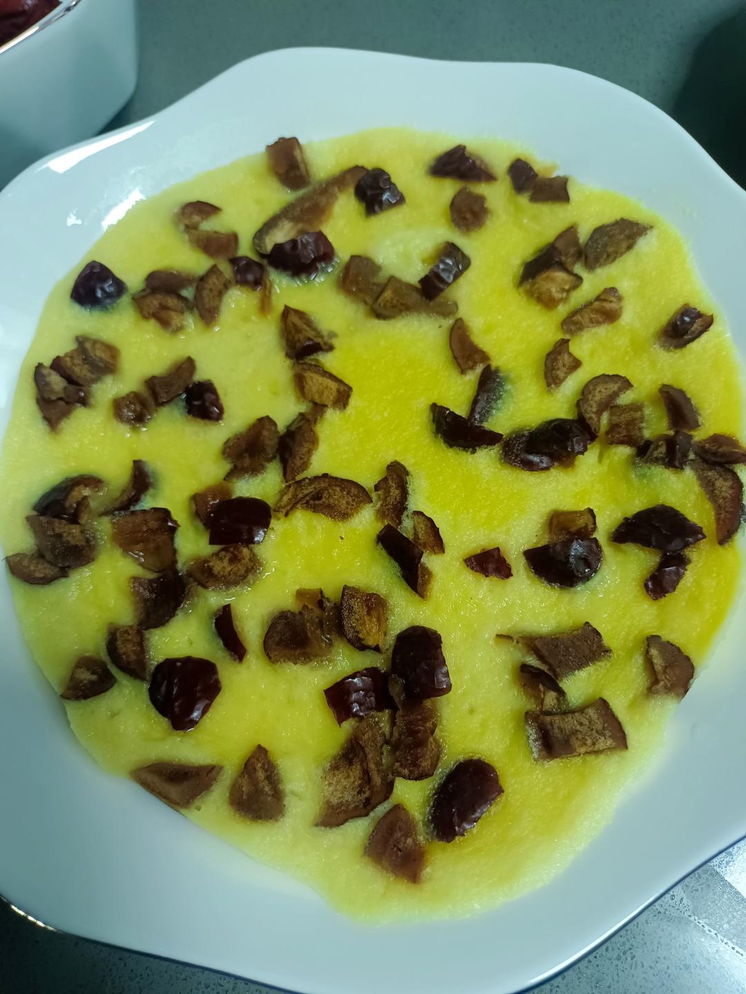 红枣蛋糕,没加泡打粉,蒸完成大饼了
