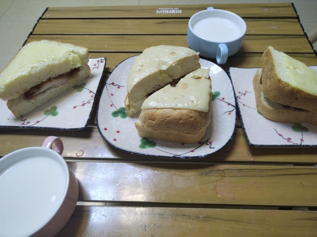 早餐4——奥尔良烤鸡腿芝士三明治、椰奶(椰汁加牛奶)