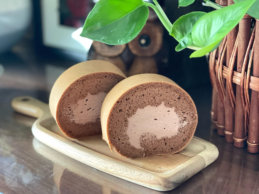 巧克力蛋糕卷,夹心部分是甘纳许奶油,太好吃啦!