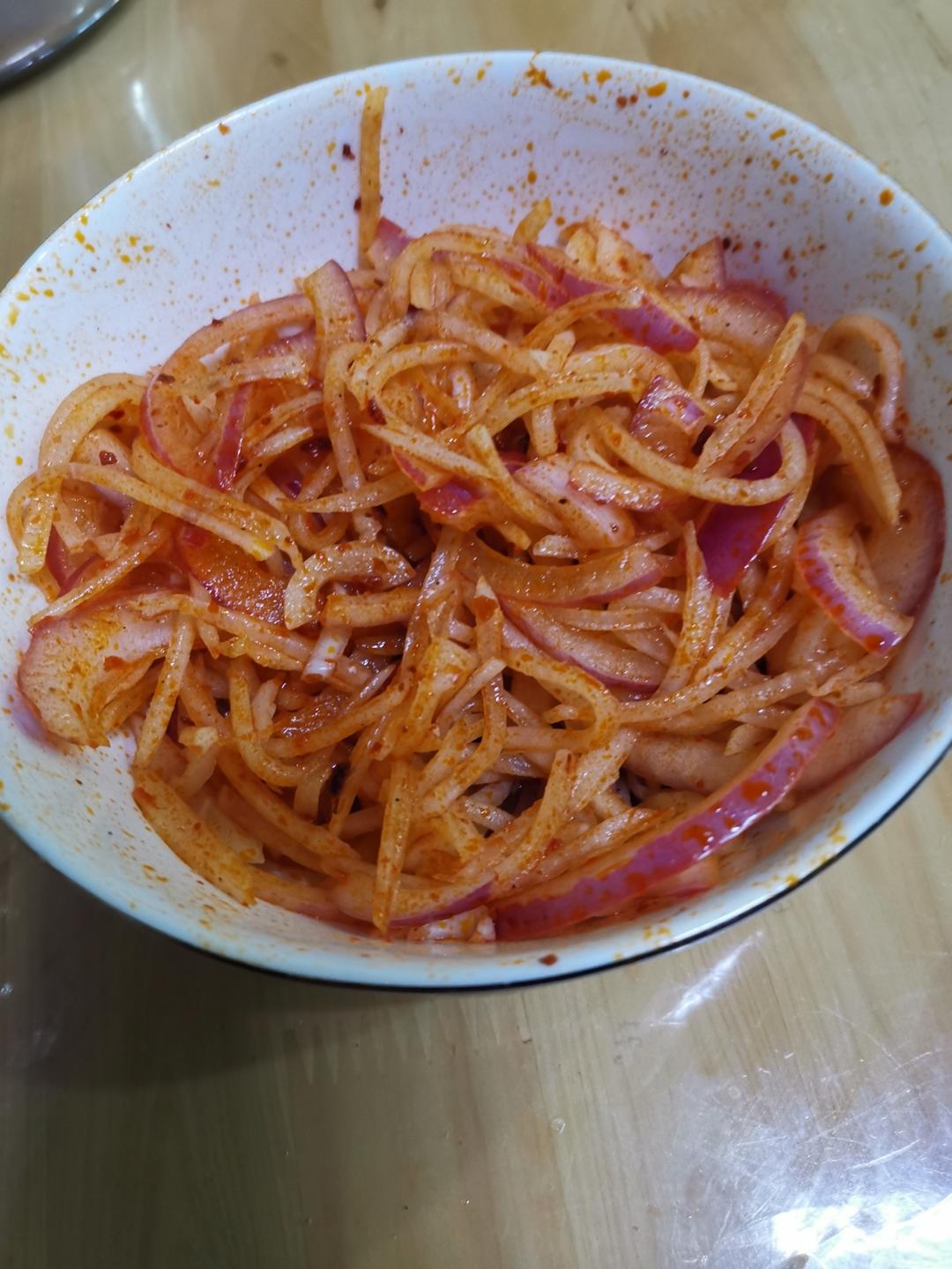做了简易版的:只放了盐,醋,花椒面,辣椒油