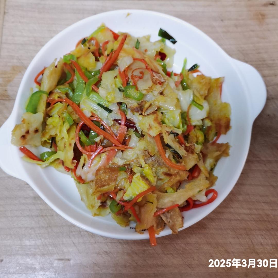 包菜辣椒胡萝卜炒饼丨花生核桃红枣紫米粥