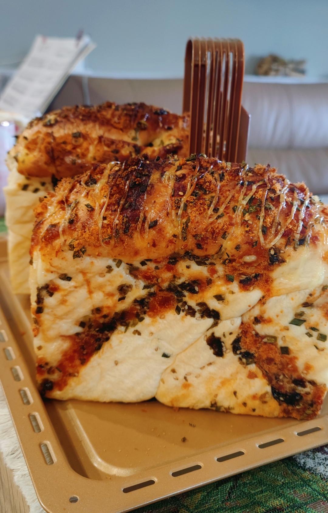 安卯卯 做过 咸香松软~保姆级教程‼️葱香肉松手撕吐司 我卷得很丑,但是不影响烤出来的漂亮,哈哈,按照配方,用的山茶花面粉,水粉比例刚刚好。就是发得太满顶部有点糊了,入口超级松软,像云朵,感谢作者😋🌷🌷#下午茶•2025年4月5日# 2025-04-05