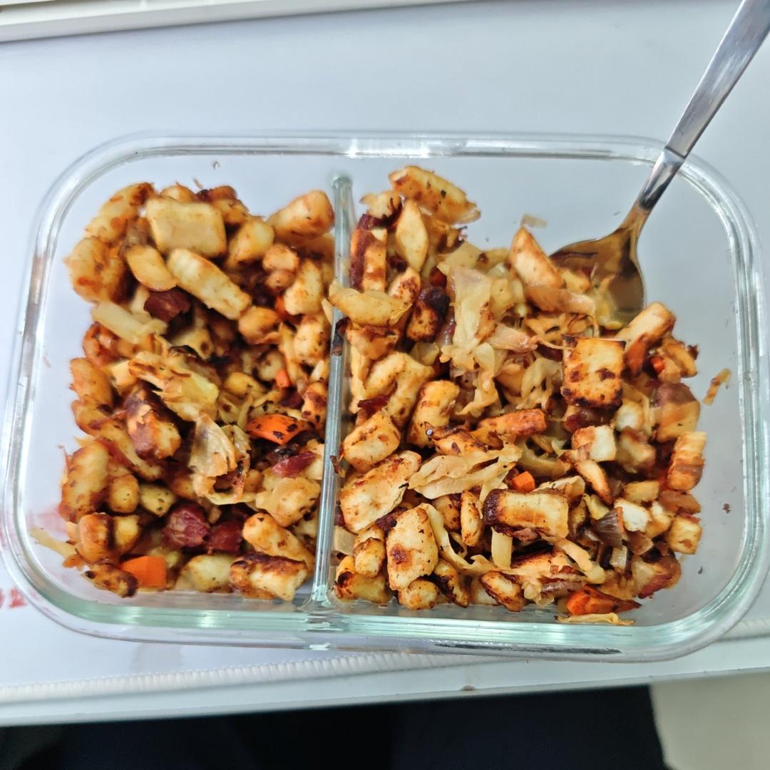 没有剩米饭,放的馒头干。但是太多了,真的是一人份?