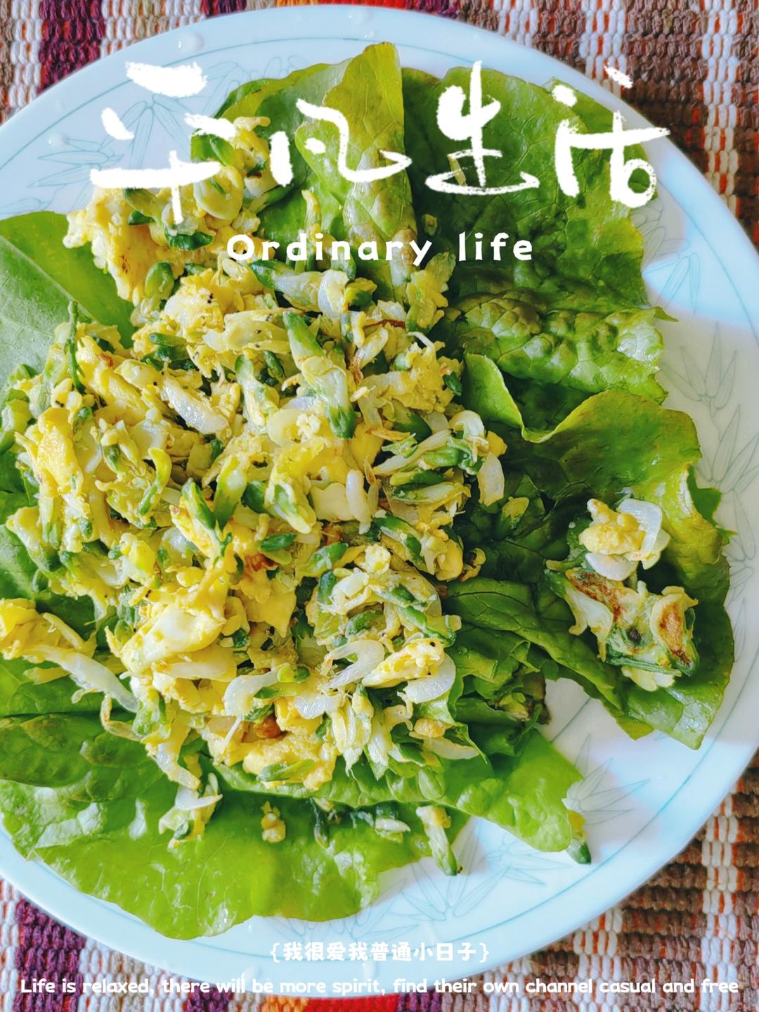 生菜包槐花炒鸡蛋🥚🦐皮⭕