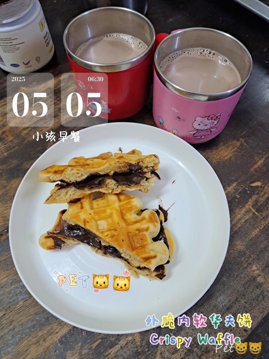 我家小朋友,尤其女儿灰常喜欢吃waffle, 每一次都要买,现在一片都不便宜叻,所以我一直想做。我不想她天天吃外面的咯