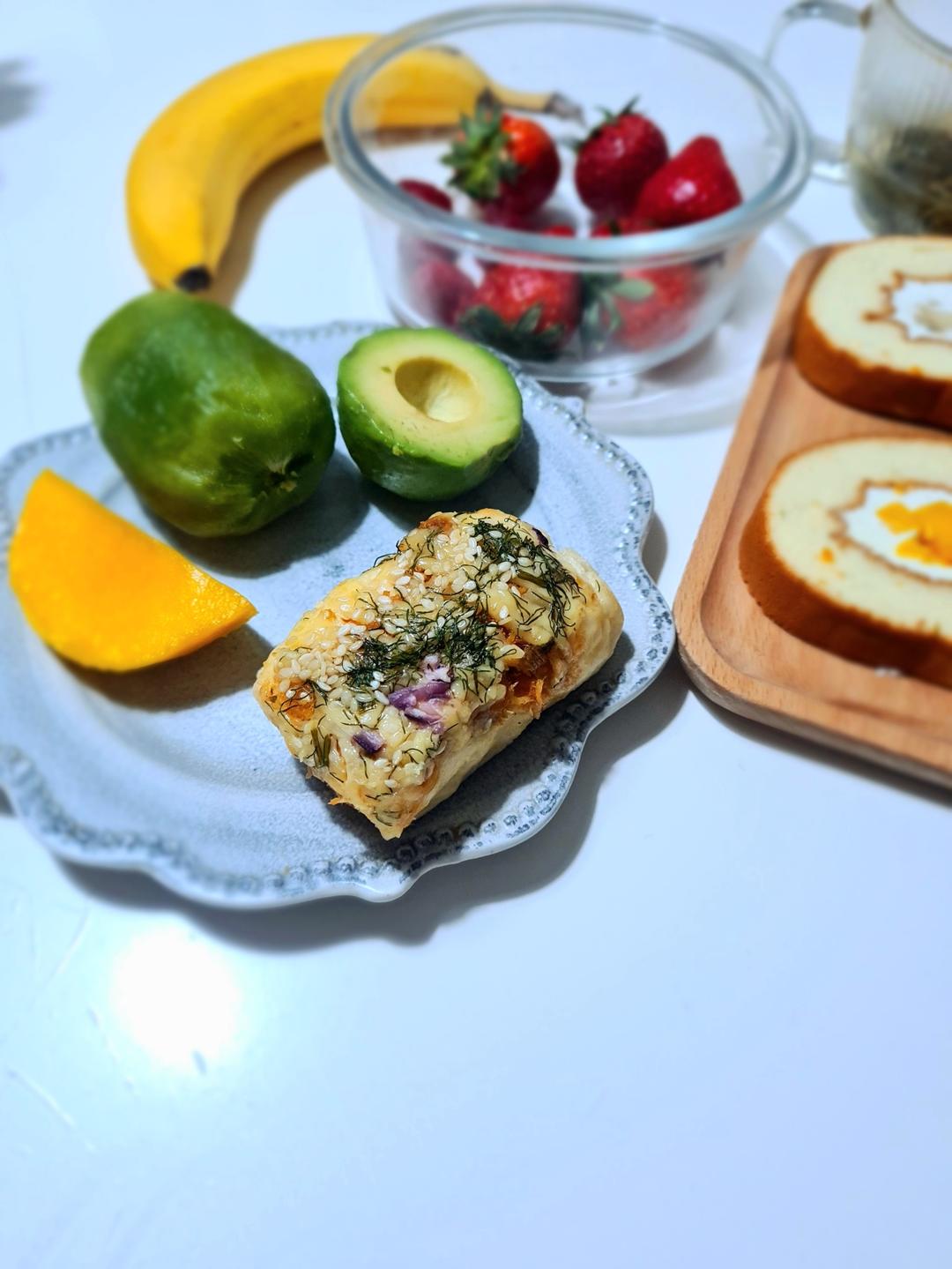 奶油宝宝w 做过 日式时蔬料理面包/早餐面包 还是用这个配方做的面团,里面卷了自制柠檬沙拉酱肉松和脆肠,表面刷蛋液粘上肉松铺点芝士,再挤一层沙拉酱,最后撒莳萝碎洋葱碎白芝麻,冷烤箱直接放进去,温度达到175以后再烤15-20分钟 2025-05-05