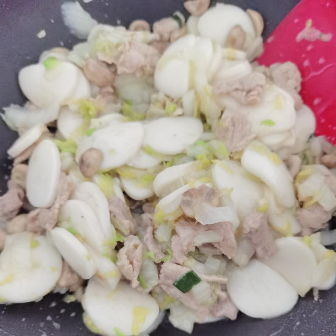 不挑锅、不焦不沾的黄芽菜肉丝炒年糕