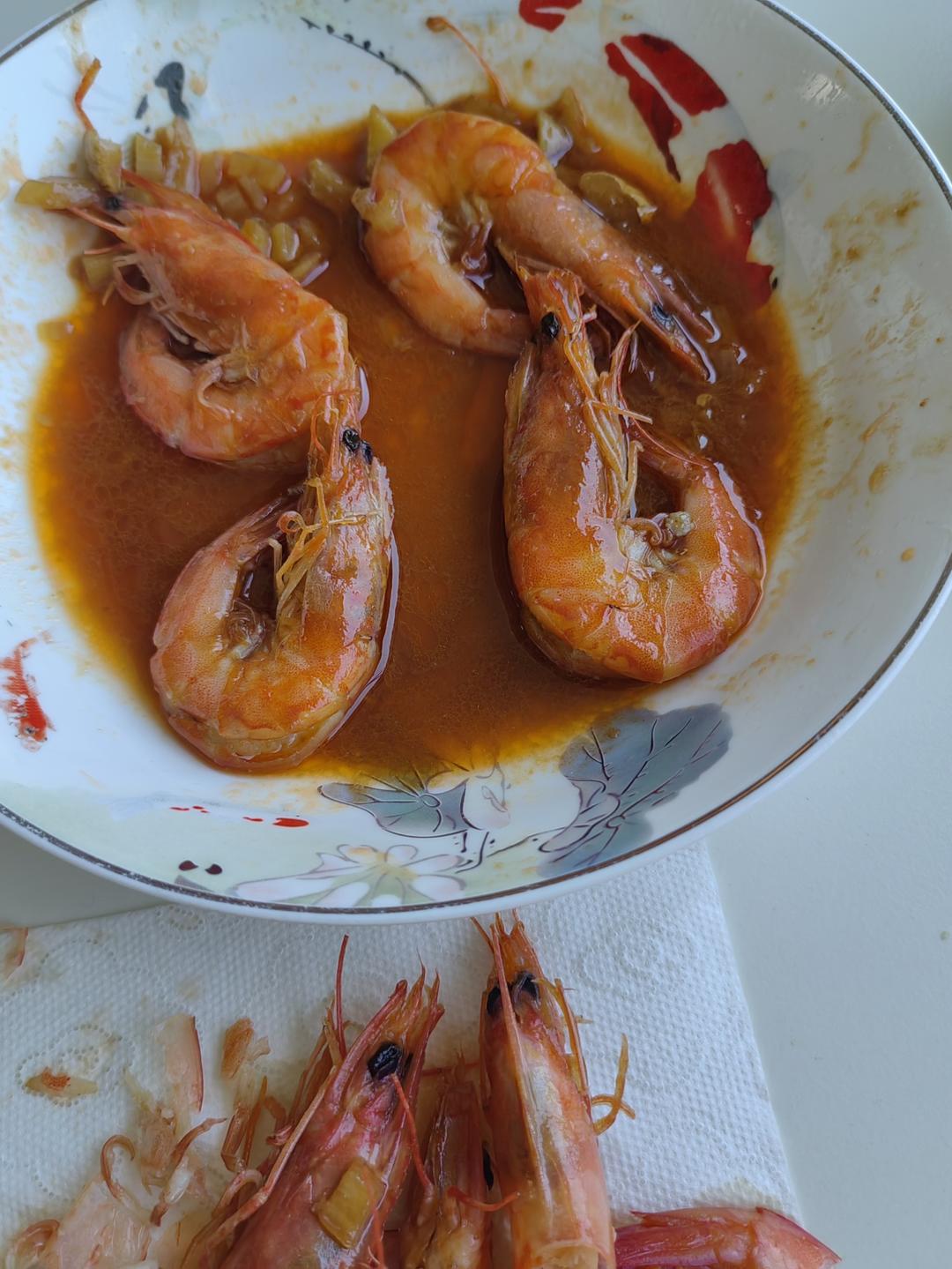 娜_mupw 做过 2025年05月17日 油焖大虾1、准备工作:清洗,去虾线,擦干;备蒜、姜,蒜多切些;调汁:一勺料酒,三勺生抽,一勺白糖,半勺盐,半勺鸡精,一点水;2、猪油,煎红,起锅;3、倒入蒜姜,大虾,压虾头(很重要),倒入调汁,翻炒一分钟收汁即可。 2025-05-17