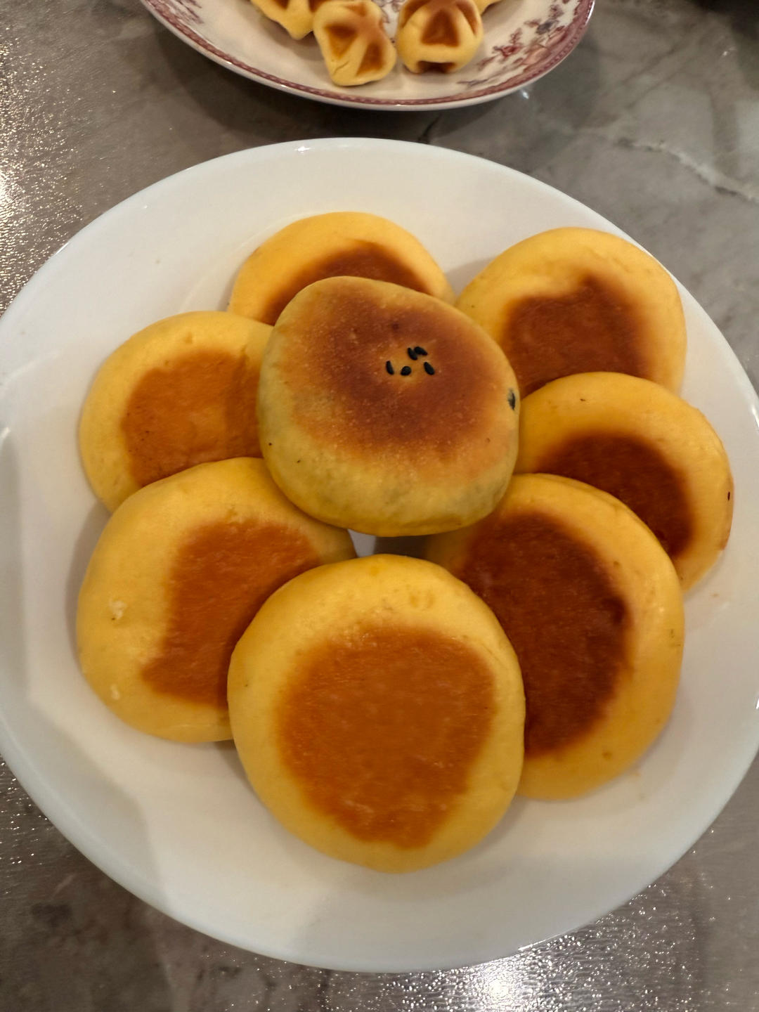 减糖减油了,做出来不是很甜,中间那个就又包了些芝麻糖心,挺好吃的^_^