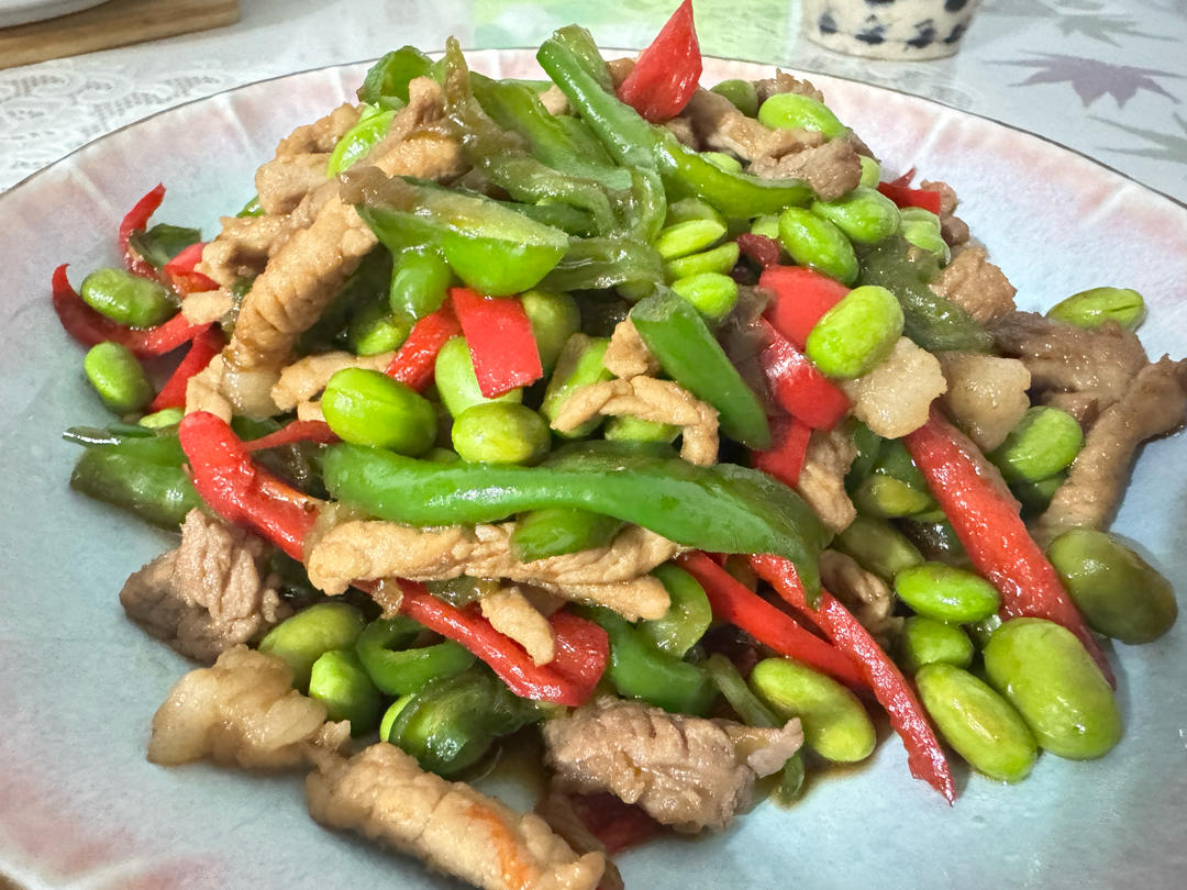 青椒毛豆炒肉丝