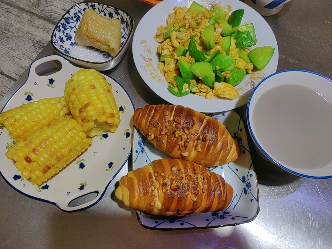 杨树的夜余小食光 做过 早餐•2025年6月7日 #早餐•2025年6月7日# 早安呀!今日高考!祝我亲爱的侄儿笔下生花!旗开得胜,金榜题名!奶茶 玉米 咖啡酥皮海盐卷 粽子 黄瓜炒鸡蛋 2025-06-07