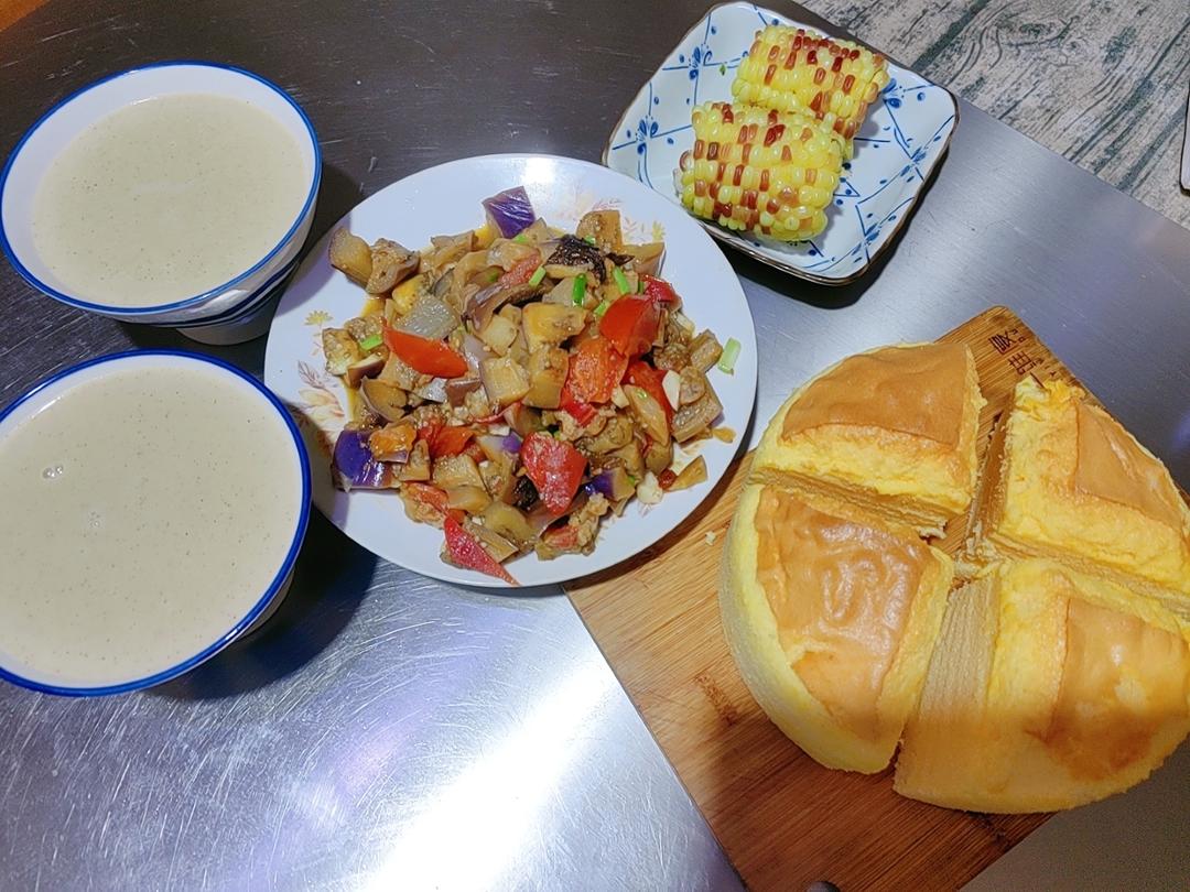 鹰嘴豆黄豆豆浆 牛奶云朵蛋糕 茄子 玉米
