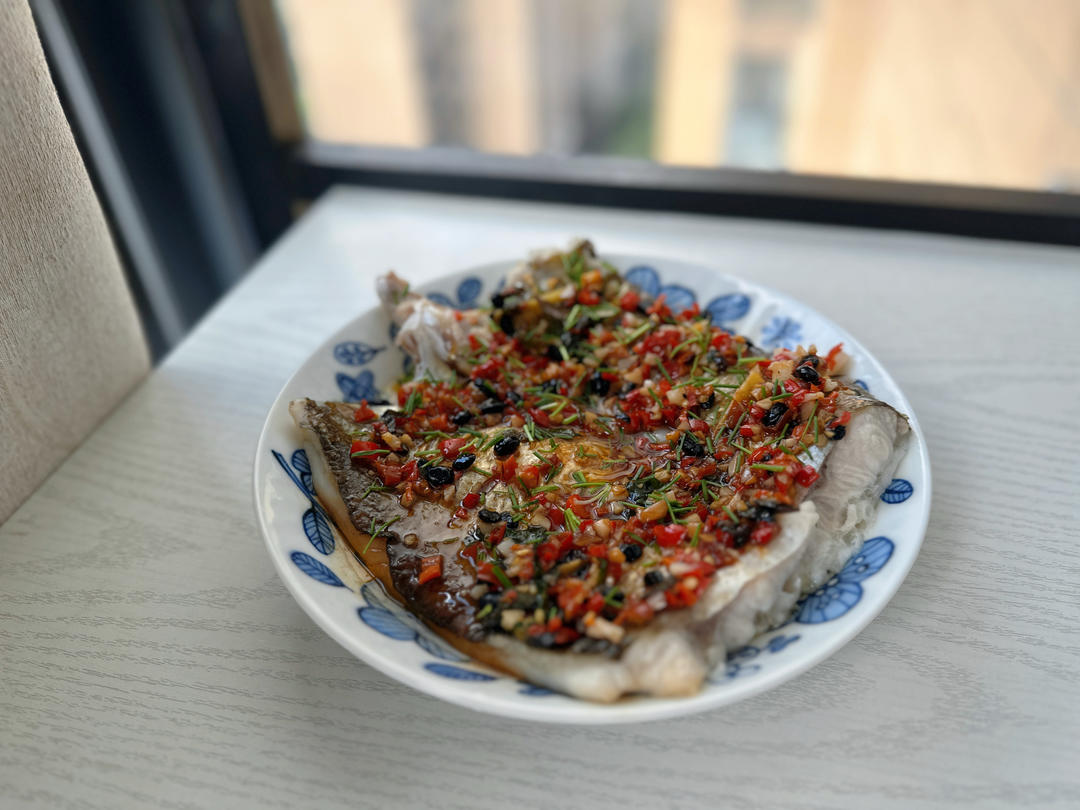 豆豉辣椒蒸大白刁~取大白刁中段,用茶油炒豆豉辣椒紫苏酱平铺鱼表面,水开后蒸8分钟,出锅撒葱花,简直就是神仙味道😀😀😀