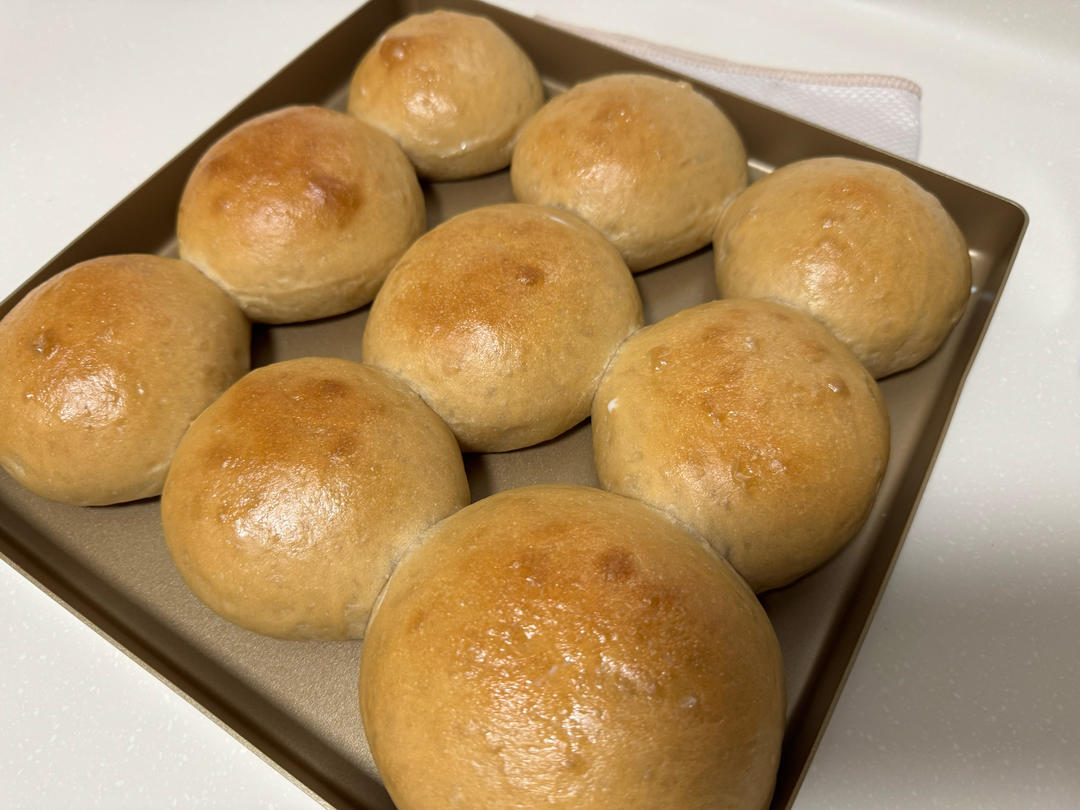 ・不错的配方!足够柔软有风味。用了隔夜水合法,后盐、酵母、黄油,手揉也非常OK。