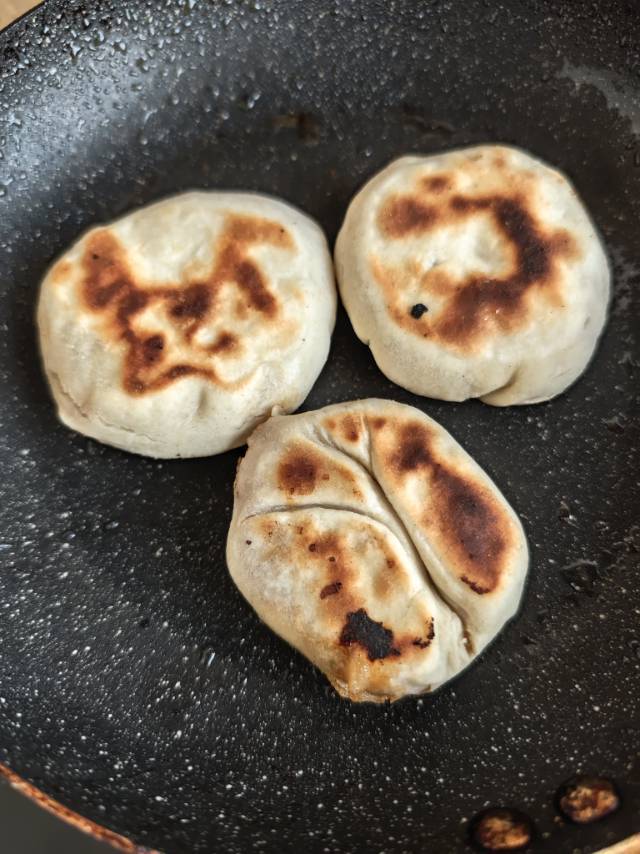 我用的虾滑➕洋葱调的馅,没有电饼铛,用家里的平底锅做的,除了卖相没有楼主的好,吃的也不错。感谢楼主分享的做法/:heart