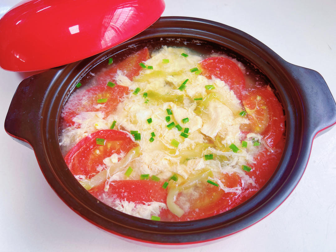 番茄鸡蛋汤🍅🥣……简单快手鸡蛋汤 放了点榨菜 美味又好喝😋😋