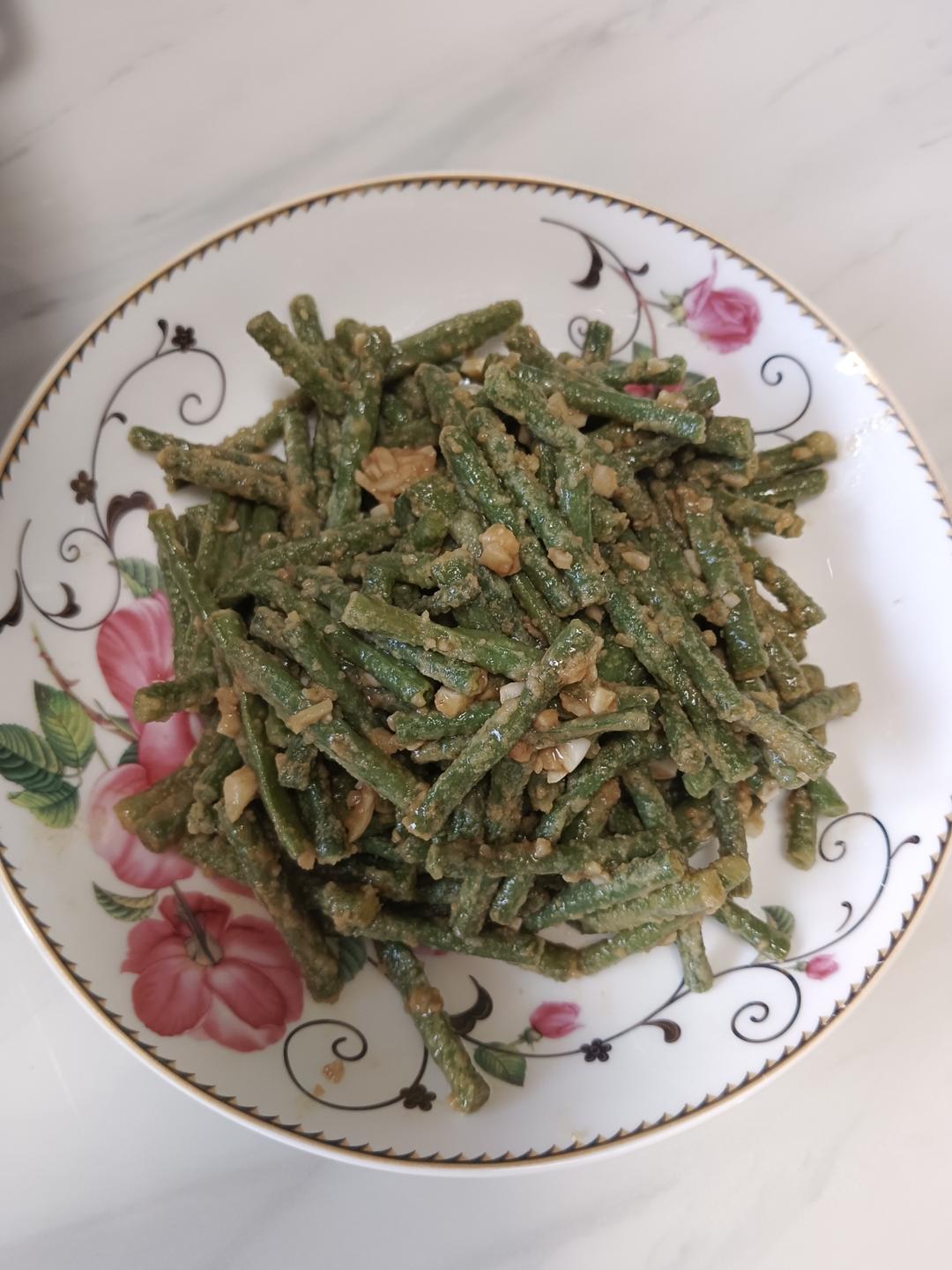 豆角嫰,蒸了八分钟很软,下次再减点时间。用二八酱拌了,香!