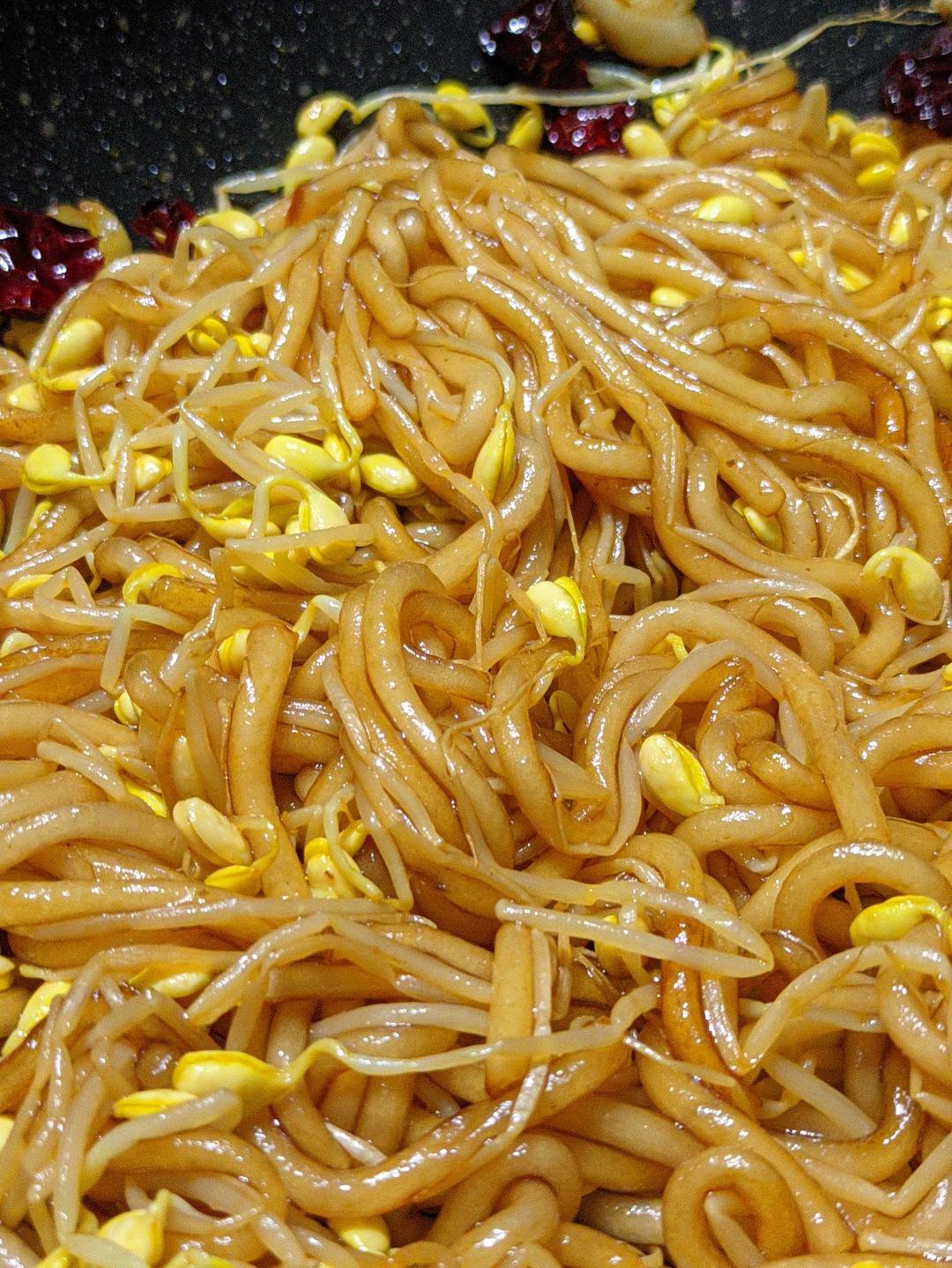 火星贴脸开大的皇冠海星 做过 黄豆芽炒粉条 超级无敌好吃!#晚餐•2025年8月15日# 粉条我没有煮,用热水泡了三到四个小时(半盆凉水半盆开水,掐一下软了就好),豆芽焯水了(水开五分钟)1.大蒜干辣椒炝锅2.放豆芽炒香3.放粉条(炒的软乎乎了,放酱油(我放了一勺生抽一勺老抽)4.快出锅的时候,花椒粉放一捏捏,盐一捏捏,十三香没有放 08-15