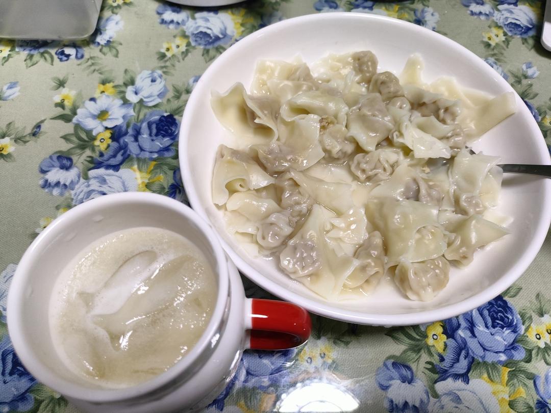 这是晚饭,馄饨➕自制梨汁冰饮🍐🧊