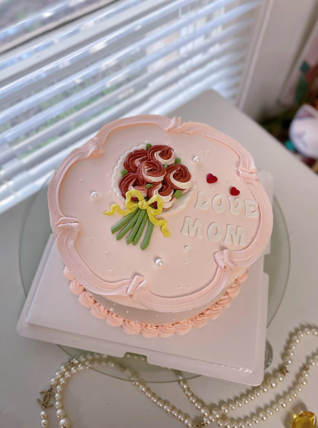 8寸love mom。 颜色深 🌹 垫了一圈翻糖 晕色