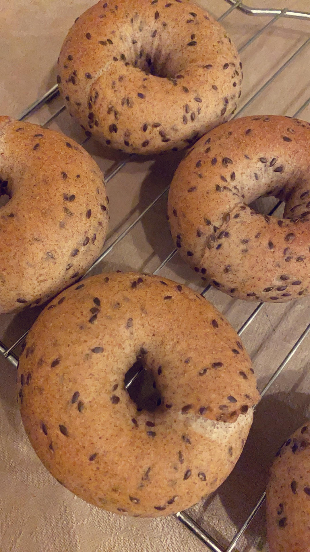 无油糖,黑全麦亚麻籽贝果
