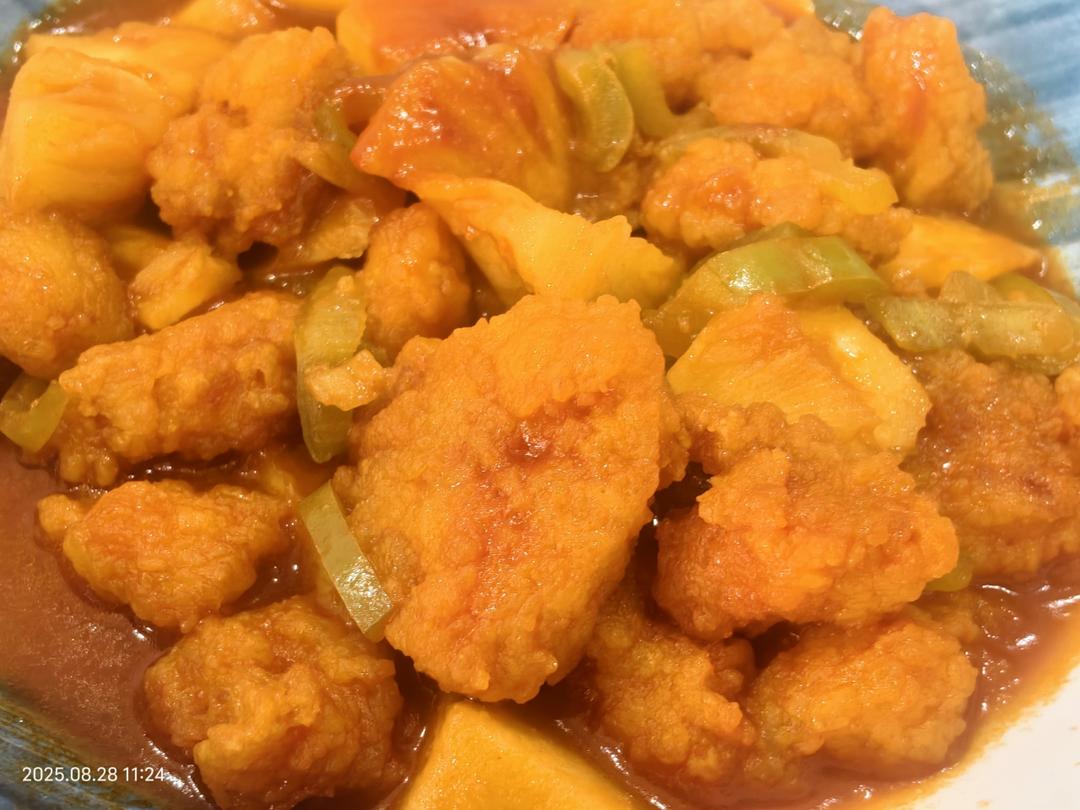 简单快手改良版~菠萝咕咾肉(用鸡米花)