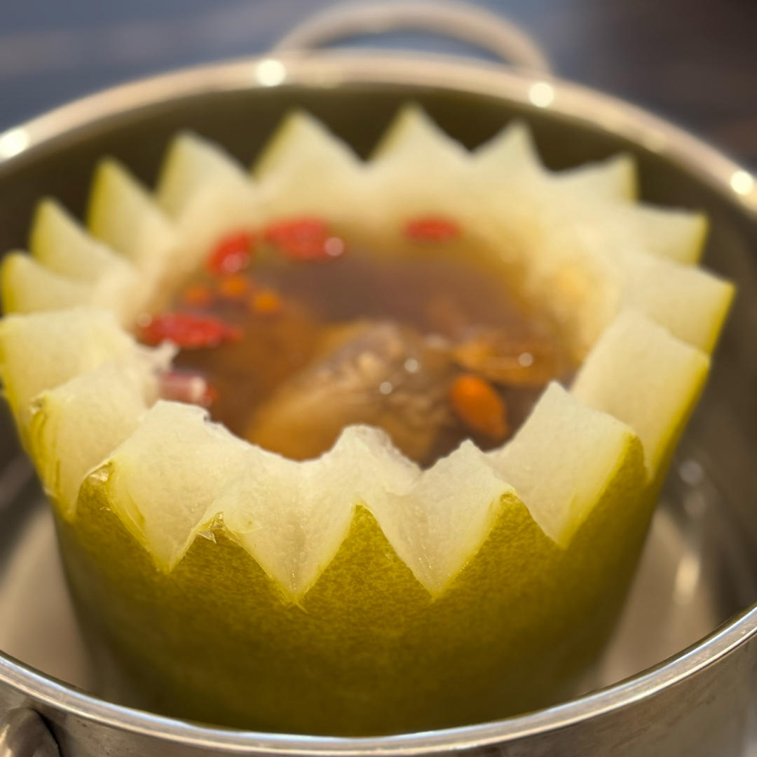 营养的冬瓜盅盅,舀完汤拿刀切冬瓜肉吃,有点意思哦