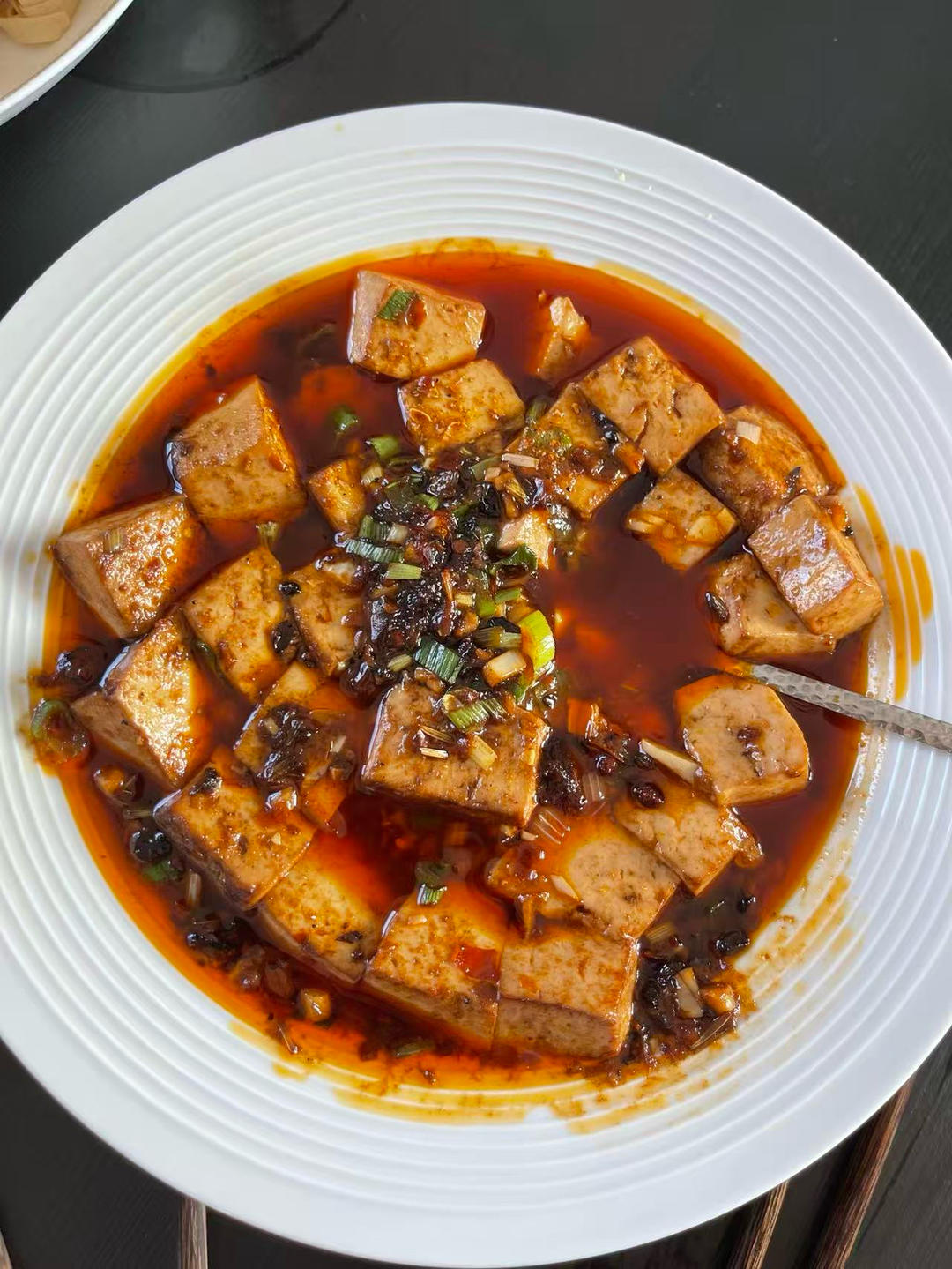 无肉沫版的麻婆豆腐,没有肉用的猪大油做的,仍然好好吃诶!这个复刻了好多次了!下饭神菜!