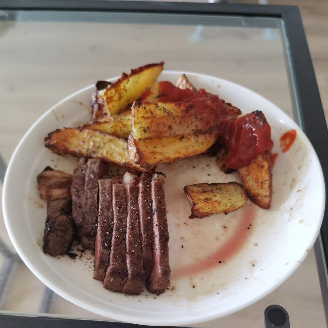 土豆用锅蒸完再用空气炸锅烤的,不够脆,可能还是得有水煮一下