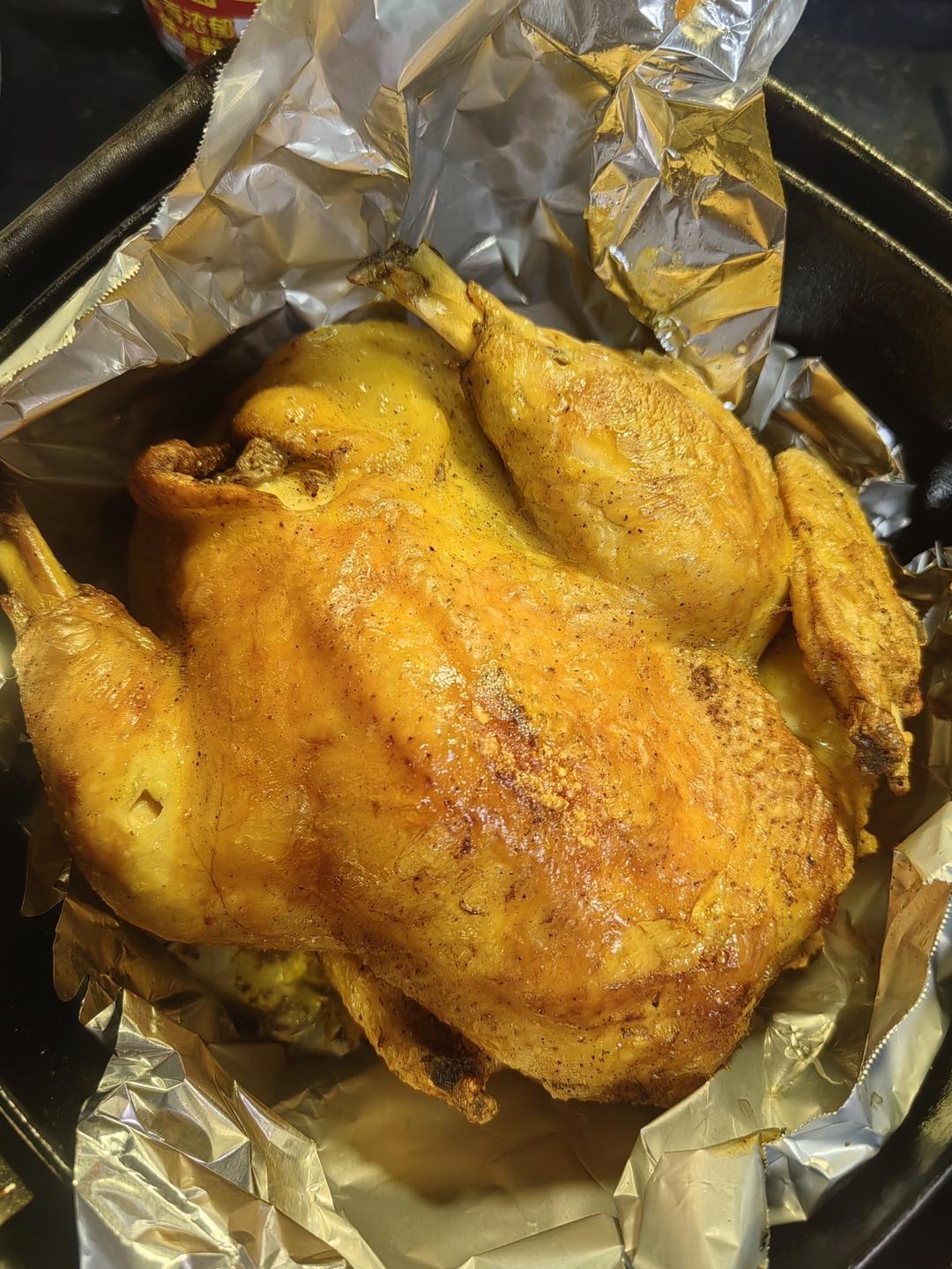 严格遵照步骤~完美~900g的供港黄油鸡,50分钟,在30分钟的时候翻面。