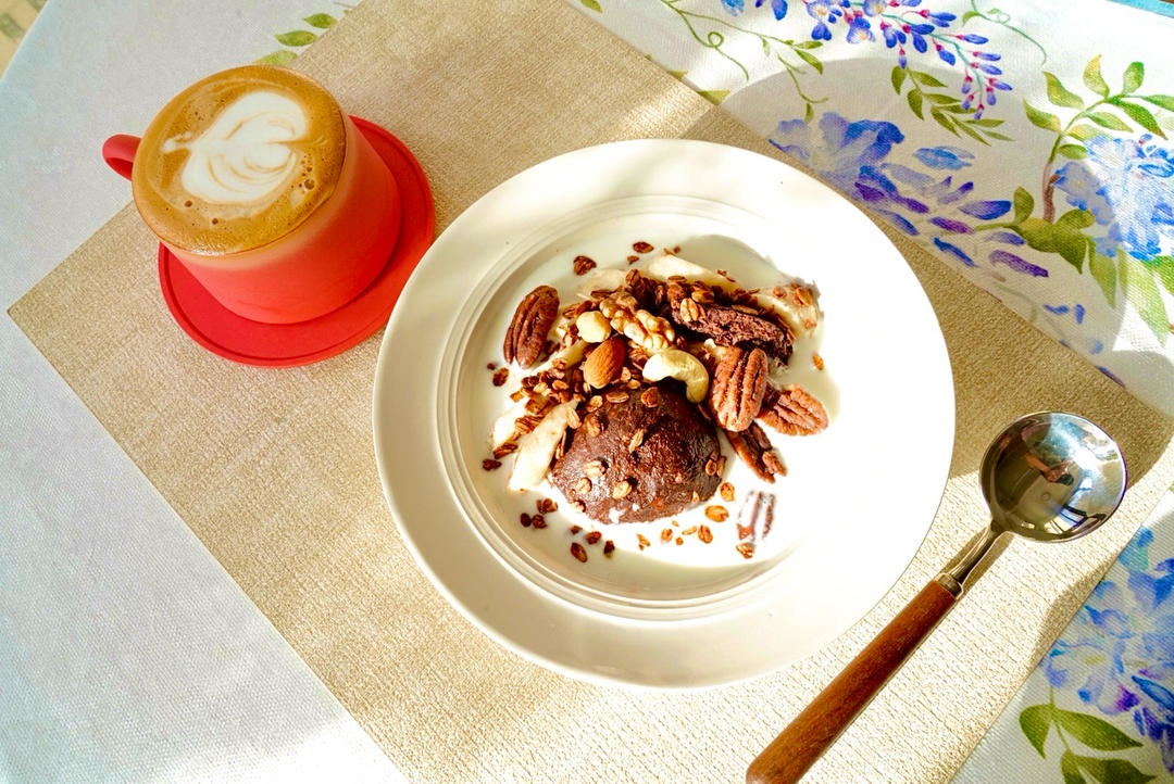 可可香蕉燕麦球泡酸奶+咖啡
