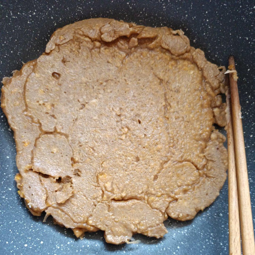 三元巧克力牛奶鸡蛋饼,我的饼总是厚厚的。还是有点干巴,有一点点巧克力味,哎总比全鸡蛋液的大饼好吃