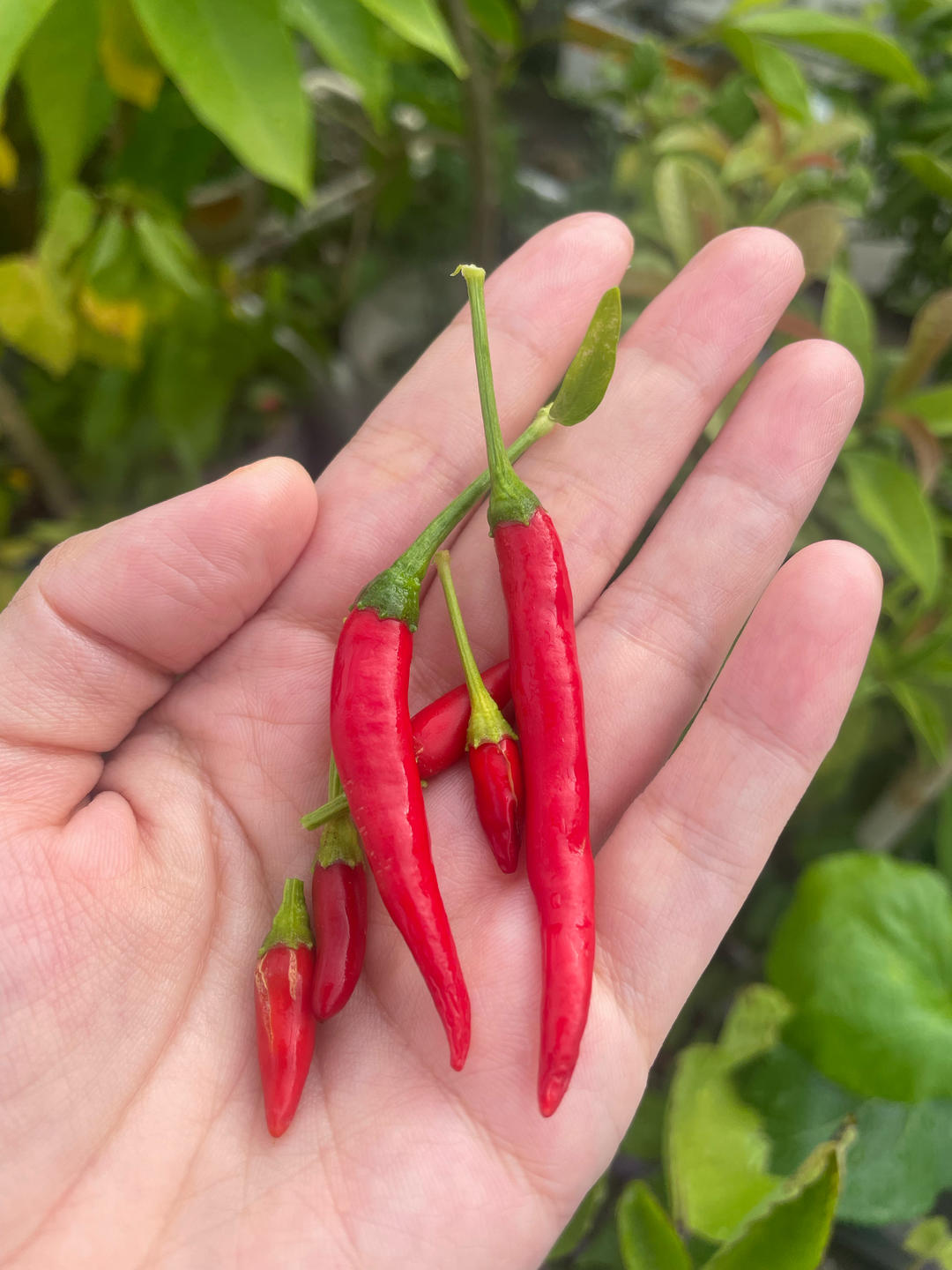 今天醒得早,6:00就醒了,想着天气太热,一大早就去给阳台的植物浇水,采摘了几个小辣椒🌶️
