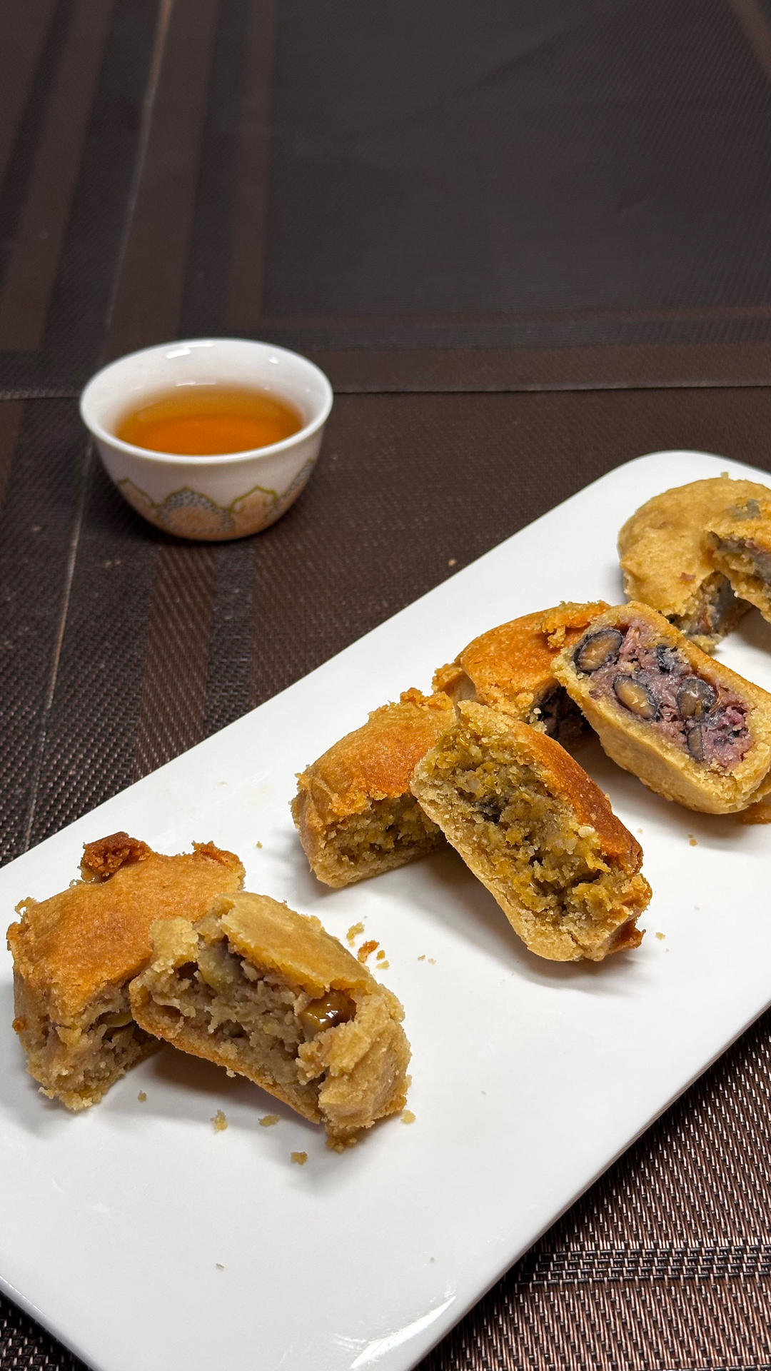 紧赶慢赶终于交作业了,刚做好没冷藏,太酥切的不整齐,四个口味都好吃,最喜欢玫瑰和板栗