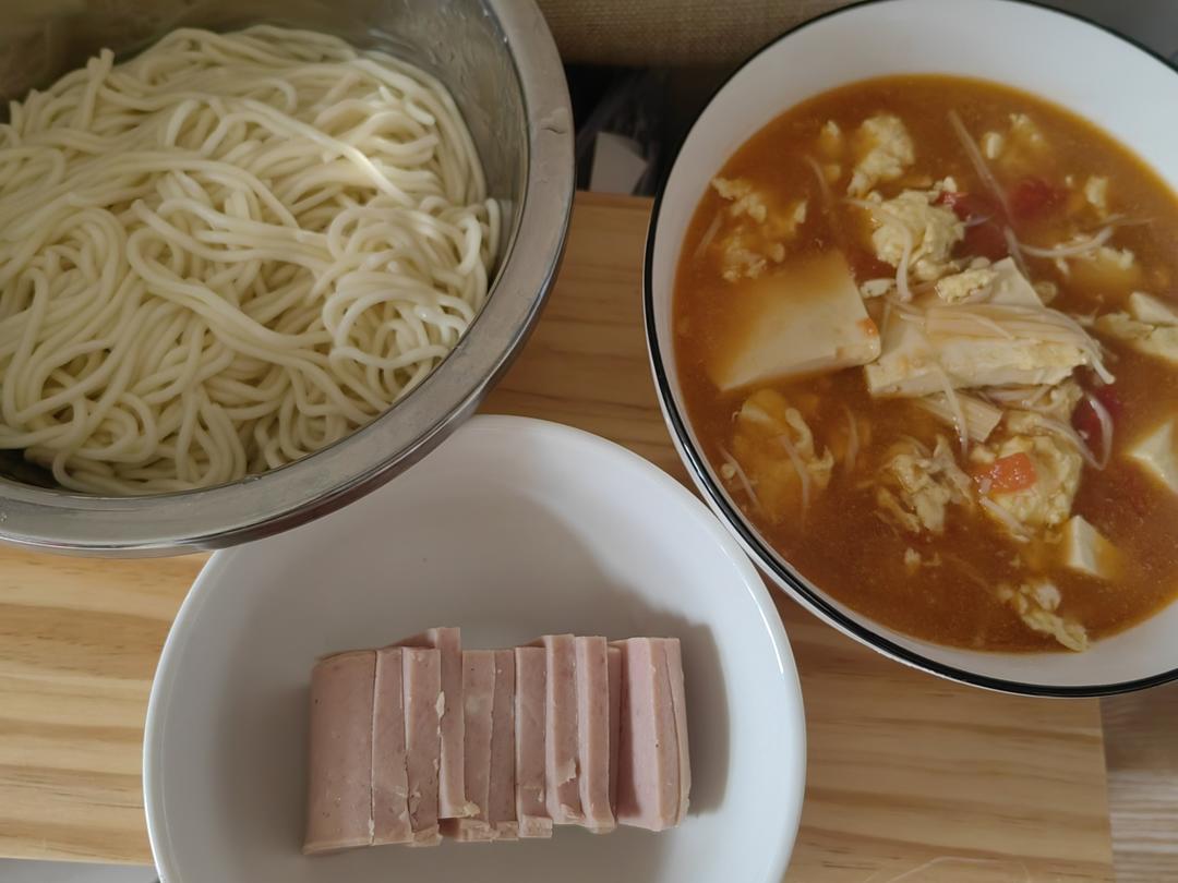 搭配了面很好吃哦。减脂餐,番茄金针菇焖豆腐,酸酸甜甜的的好吃哦。(金针菇1小把,西红柿1个,鸡蛋5个,豆腐1块)