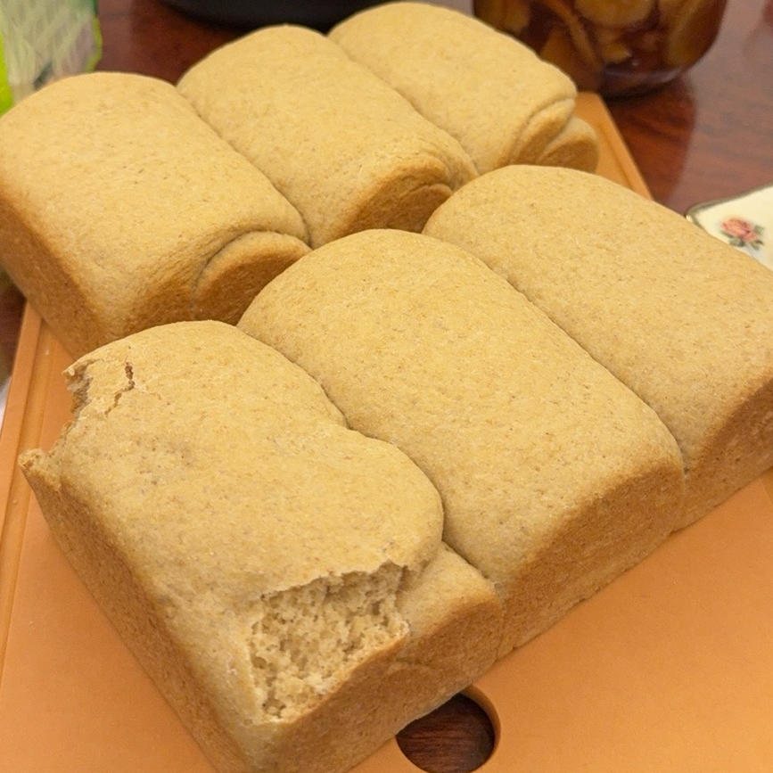 这两次都没发起来 好像是因为全麦粉的比例太高 或者没拉起筋来