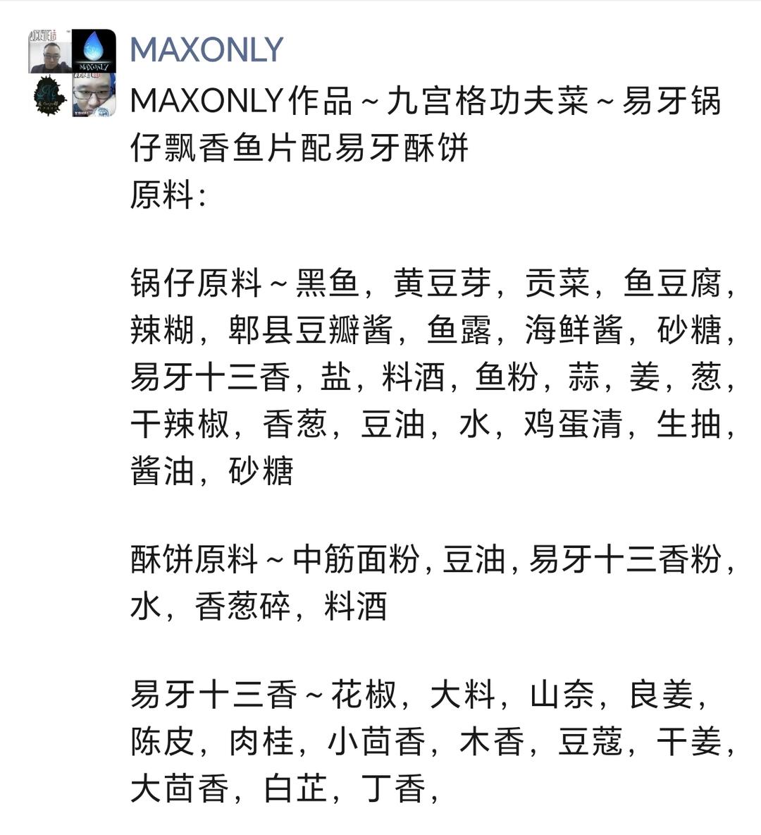 MAXONLY的九宫格功夫菜之菜谱