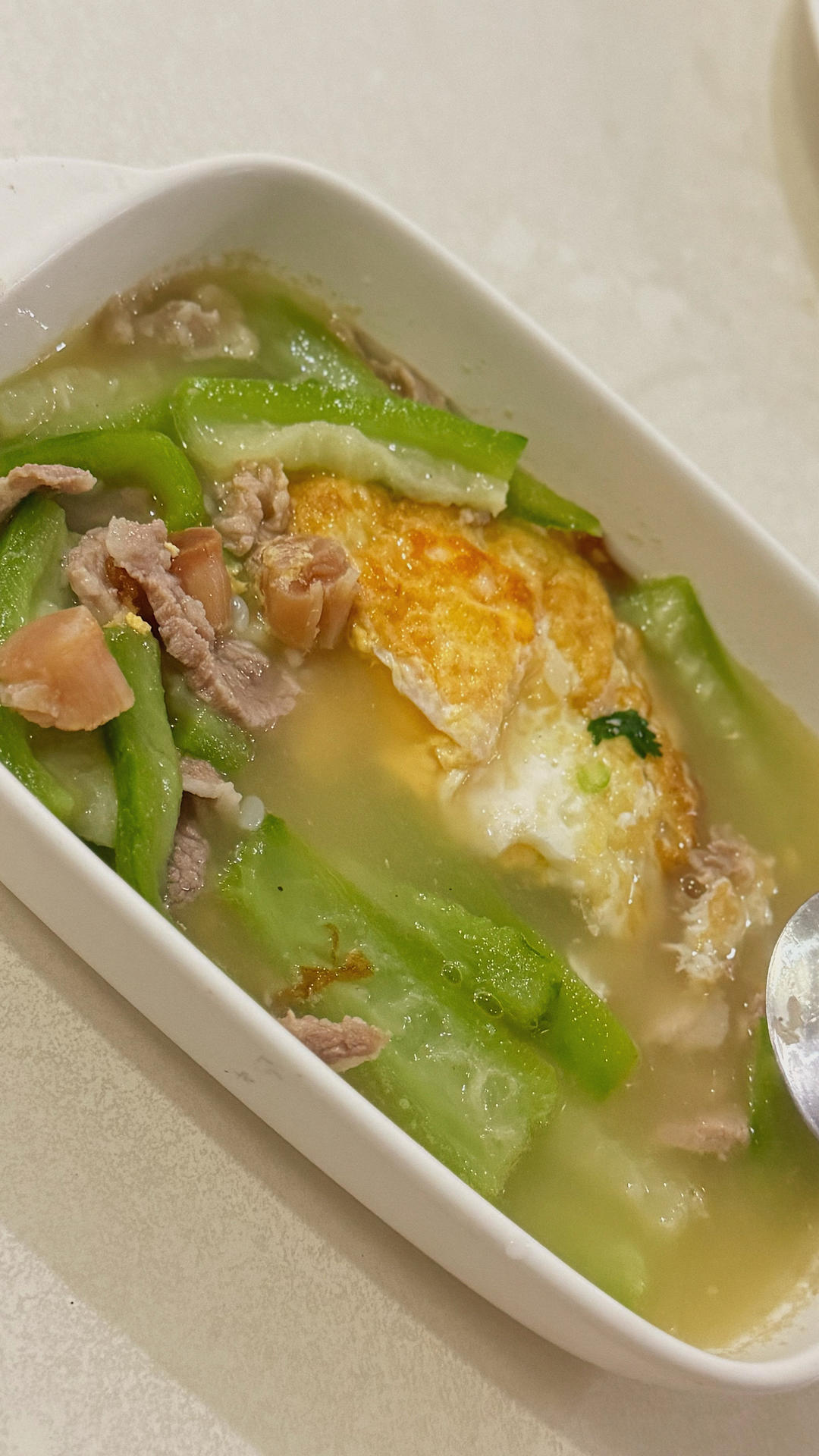 今晚的丝瓜瑶柱鸡蛋汤,非常鲜甜好喝