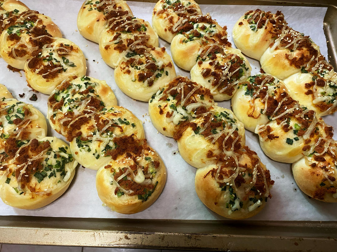 万能台式面团新食谱,古早三颗葱肉松包也太香了