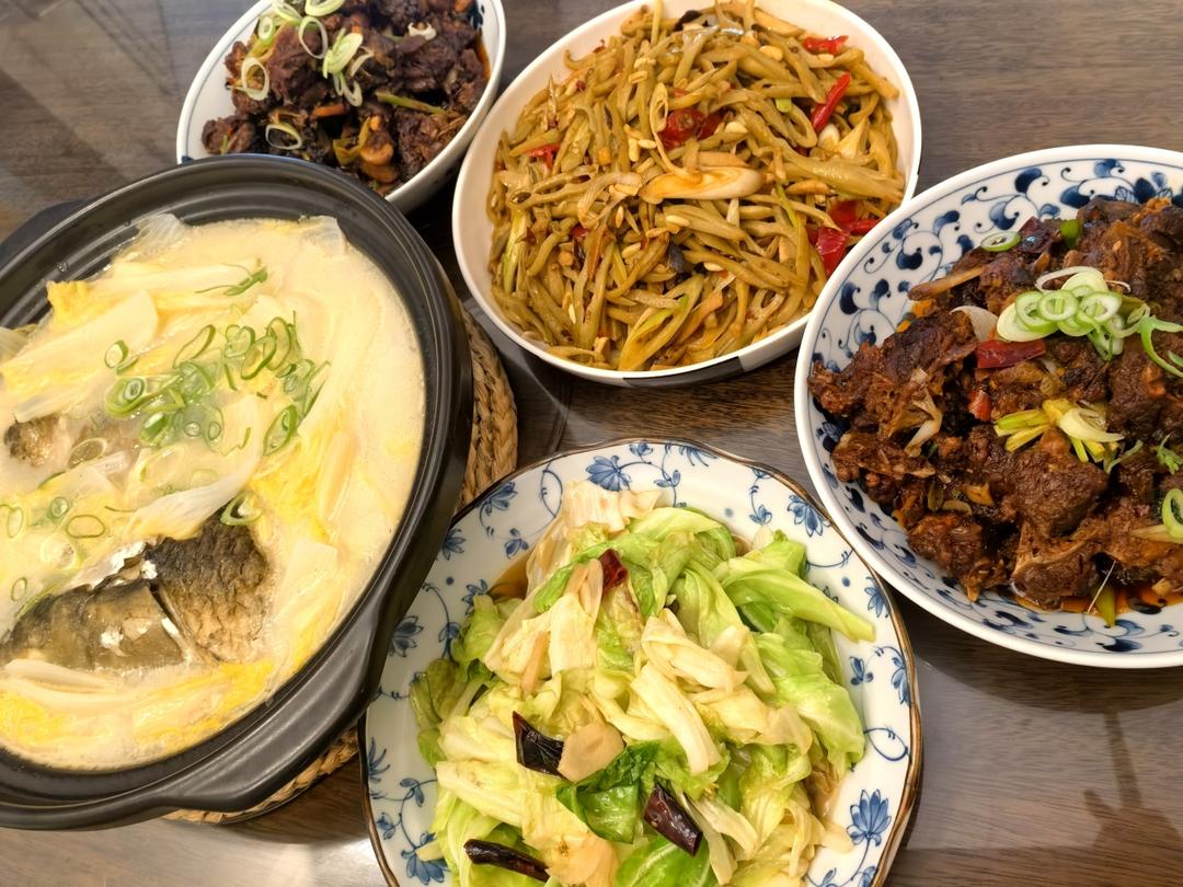 厨房书房伪票友 做过 午餐•2025年10月6日 #午餐•2025年10月6日# 今日午餐:红烧鹅肉、泡椒狗爪豆、炝炒莲白、鱼头汤。鹅肉、大草鱼和狗爪豆全是昨天去公婆家带回来的,全是老人自己养自己种的纯天然食材。第一次做鹅肉,没想到并不难,很美味。不过鹅肉好吃,鹅毛收拾起来差点崩溃😂😂😂婆婆小院前的柚子树结了六七十个大柚子,下月才熟,但看着就好心情。 3天前