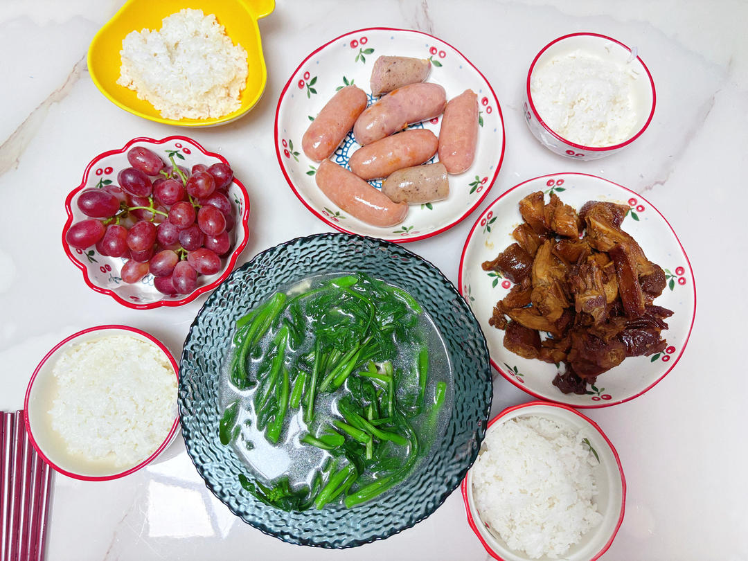 三柒爱美食 做过 晚餐•2025年10月8日 晚餐:烧鸭+烤肠+瘦肉青菜汤下午带俩姐弟去图书馆,回来晚了,来不及准备食材,就买了熟食烧鸭和烤肠回来加热一下,然后再煮个姐姐喜欢吃的青菜汤,放了一点瘦肉提鲜,青菜是妈妈种的小菜心,又嫩又新鲜,很好吃。#晚餐•2025年10月8日# 28天前