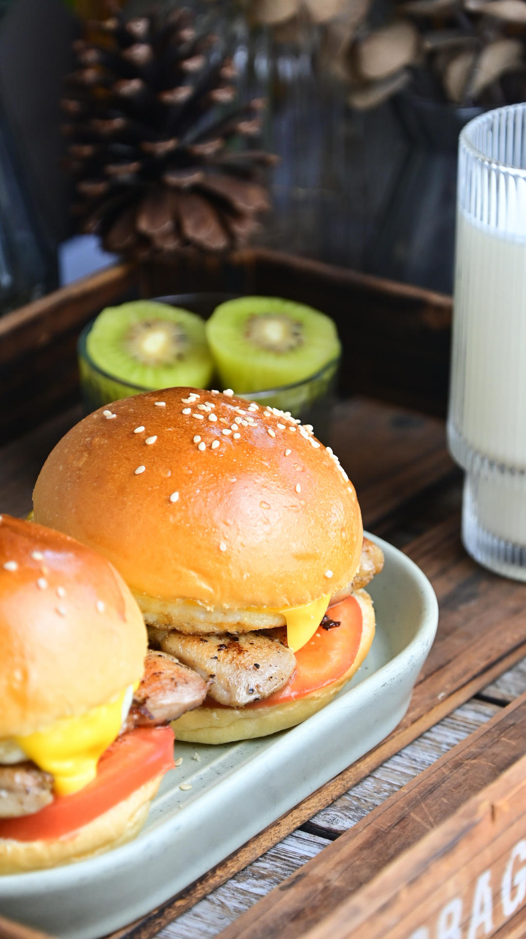 鸡排汉堡包 牛奶 猕猴桃