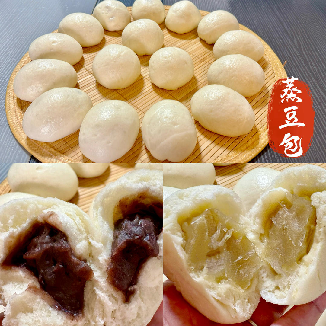蒸豆包:红豆沙和白莲蓉馅的,好吃!