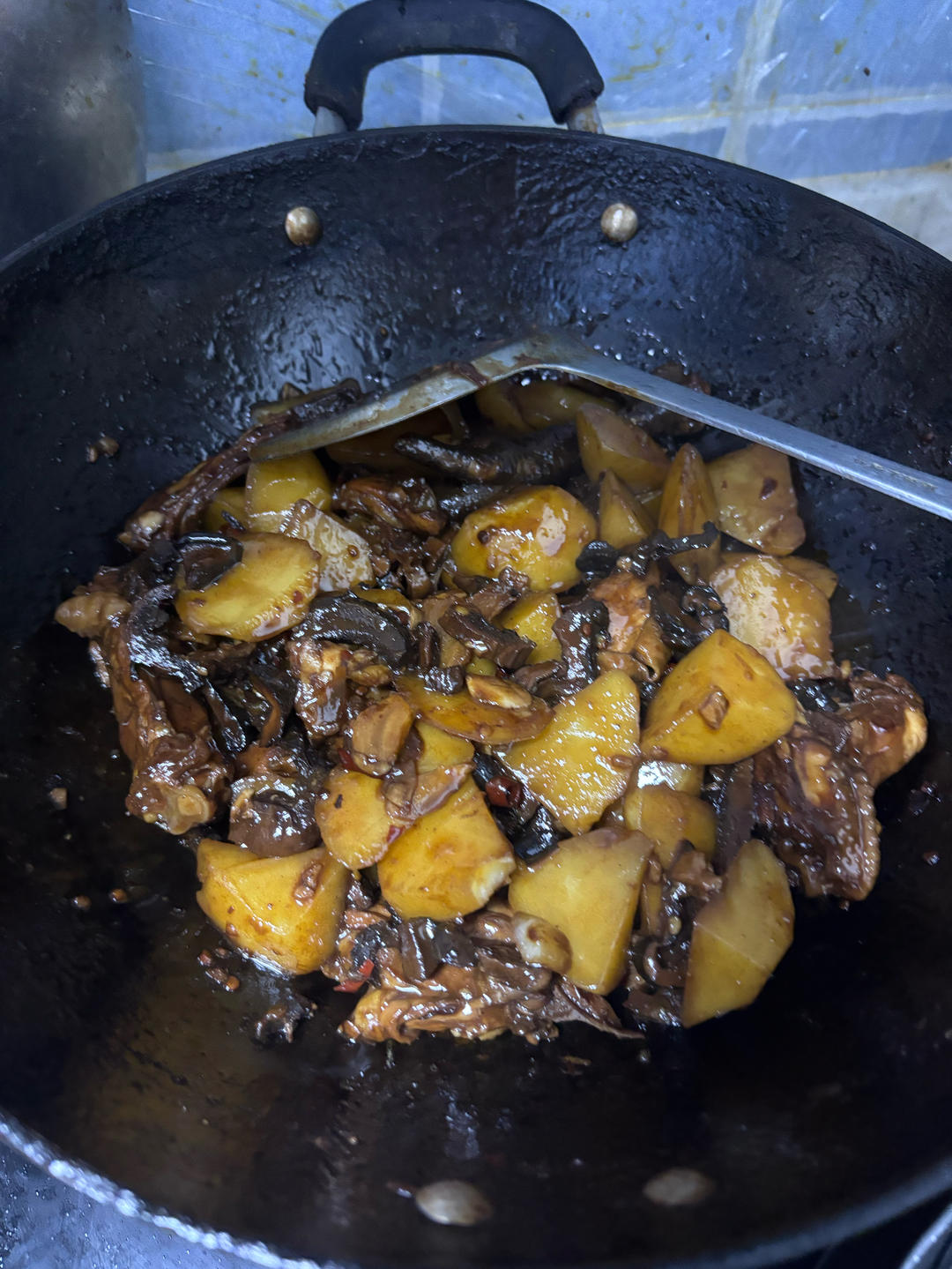 老抽不小心放多了,小朋友不爱吃青椒没放,放了另种干香菇,脆脆的好吃,除了颜色黑,味道正好的✌️