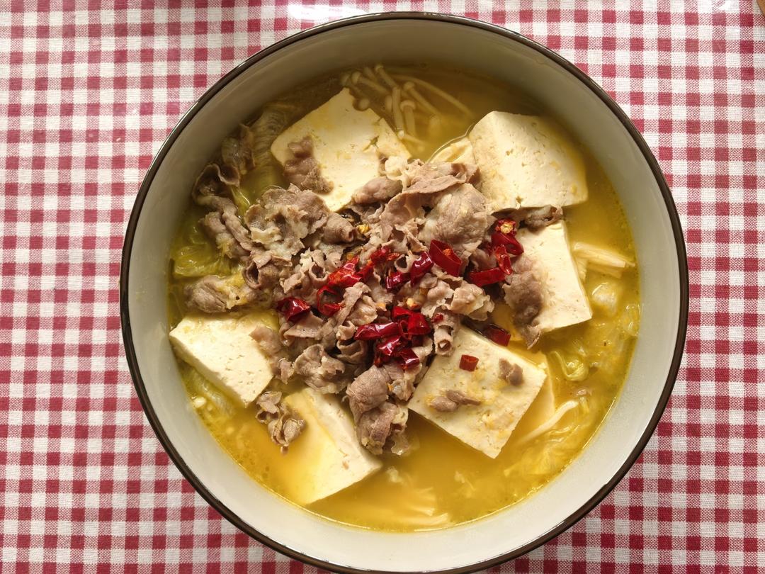 lanxi19 做过 酸汤肥牛😋 你一定要会做的家常菜—酸汤肥牛圆生菜、金针菇焯水铺底(还可以放焯水的豆芽菜)豆腐、肥牛片焯水备用 酸汤料+400ml水煮开放入豆腐肥牛再煮开放入碗 中间撒辣椒碎 泼热油有肉有菜 食材新鲜 配碗米饭 绝👍🏻 #酸汤肥牛😋# 21天前